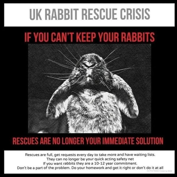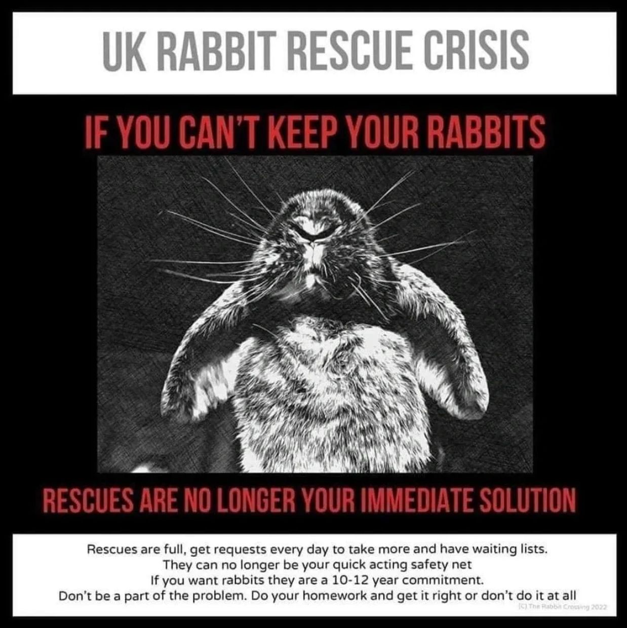 Due to the overwhelming amount of rabbits currently on our waiting list & the constant abuse received from people looking to surrender, we are unfortunately having to close to new intakes after today. 💔